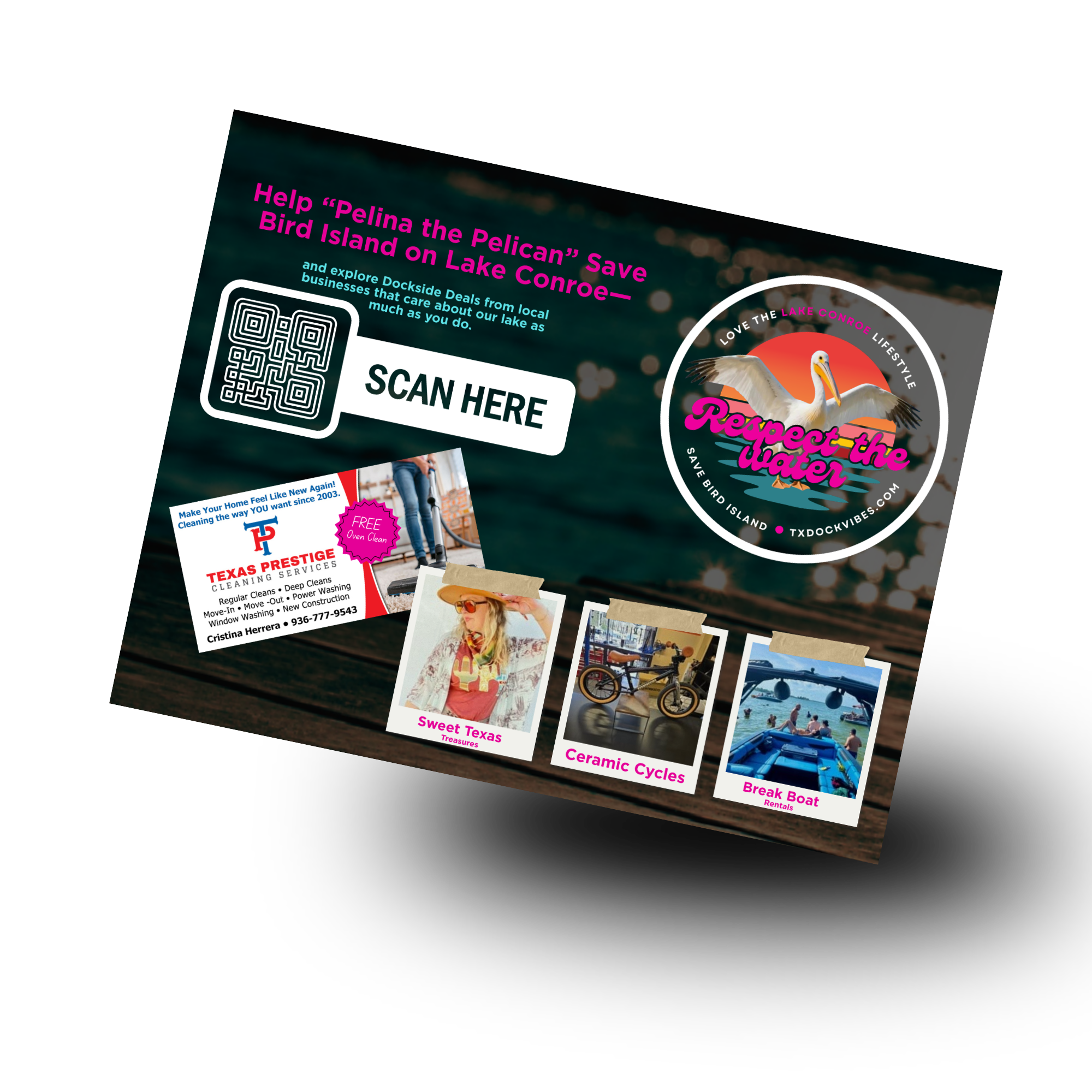 Your business is featured in TXDOCKVIBES postcards sent to local residents